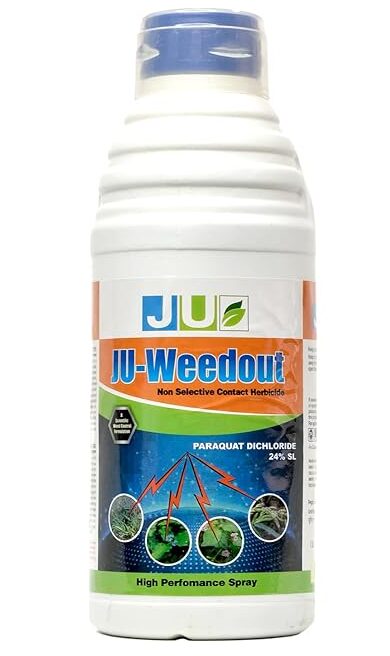 JU-Weedout ek Non-Selective Contact Herbicide hai jisme Paraquat Dichloride 24% SL paya jata hai. Yeh har tarah ki jungli ghas aur kharpatwar ko sampark (contact) mein aate hi turant khatam kar deta hai.
