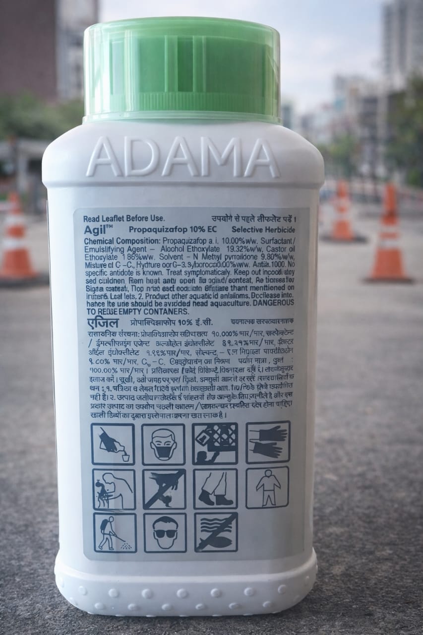 Agil Propquizafop 10% EC ek advanced aur effective herbicide hai jo unwanted ghaas (weeds) ko jad se khatam karta hai. Yeh systemic action ke through kaam karta hai, yani yeh patton se absorb hoke poore weed plant me fail jata hai aur usko andar se destroy karta hai.